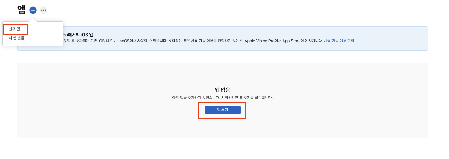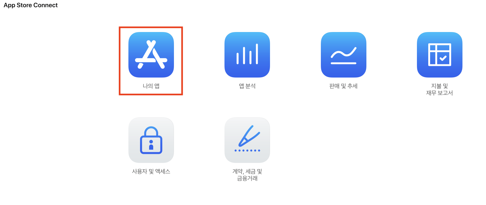 가장 먼저 App Store Connect에 접속하여 나의 앱을 추가 한다.