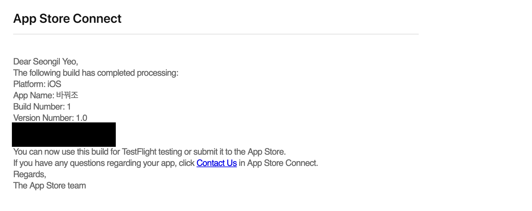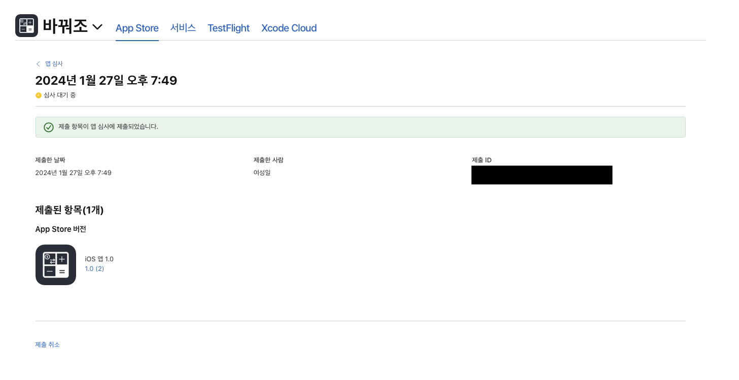 (App Store Connect에는 업로드 되어도 바로 반영되지 않을 수 있다.)