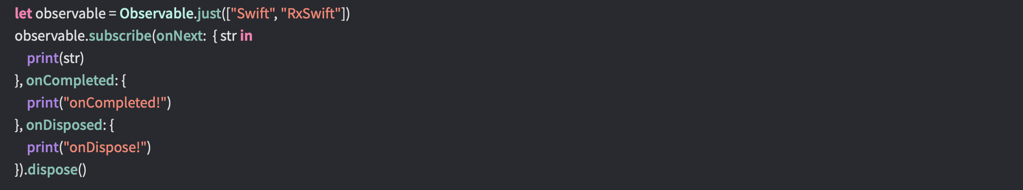 결과는? Just는 오직 하나의 Observable을 emit한다고 했으니까 "Swift" 하나만 emit하지 않을까?
