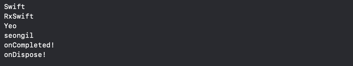 순차적으로 방출하기 때문에, Swift 출력 후 RxSwift를 출력함을 볼 수 있다.