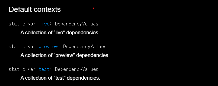 정의한 의존성을 DependencyValues에 등록하면 된다.