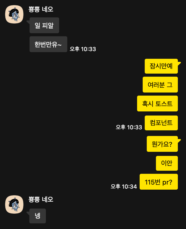 가장 중요한 것은 어떤 플랫폼으로 리마인더를 전달할 것인가였어요. 카카오톡은 팀원들이 가장 자주 확인하는 메신저이기 때문에, 처음에는 단톡방에 직접 PR 리마인더를 보내는 방식을 고민했었죠.