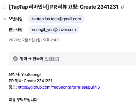 탭탭 팀은 디스코드 서버를 함께 운영하고 있었고, 다들 개인 메일 알림도 잘 켜놓는 멋진 팀원들(?)이기 때문에, 디스코드와 개인 메일을 통해 PR 리마인더를 전달하기로 했어요.