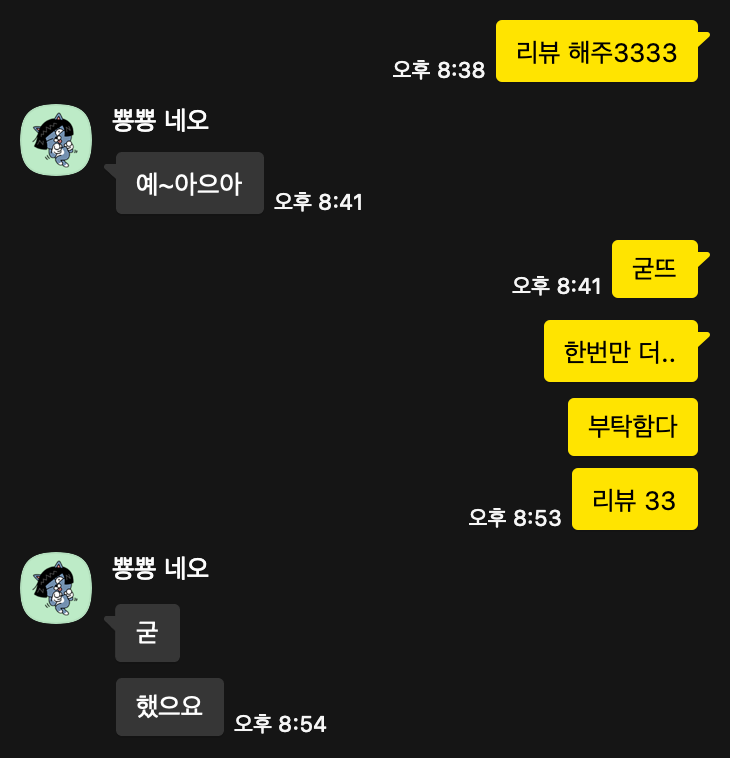 물론 수동으로 리뷰를 요청하고 싶다면 카톡으로 요청하면 되지만.. PR링크를 복사하고, 리뷰 요청 멘트를 작성하고, 다시 전달하는 과정이 생각보다 귀찮게 느껴질 수 있다는 생각이 들었어요. (없는 것 보단 낫잖아)