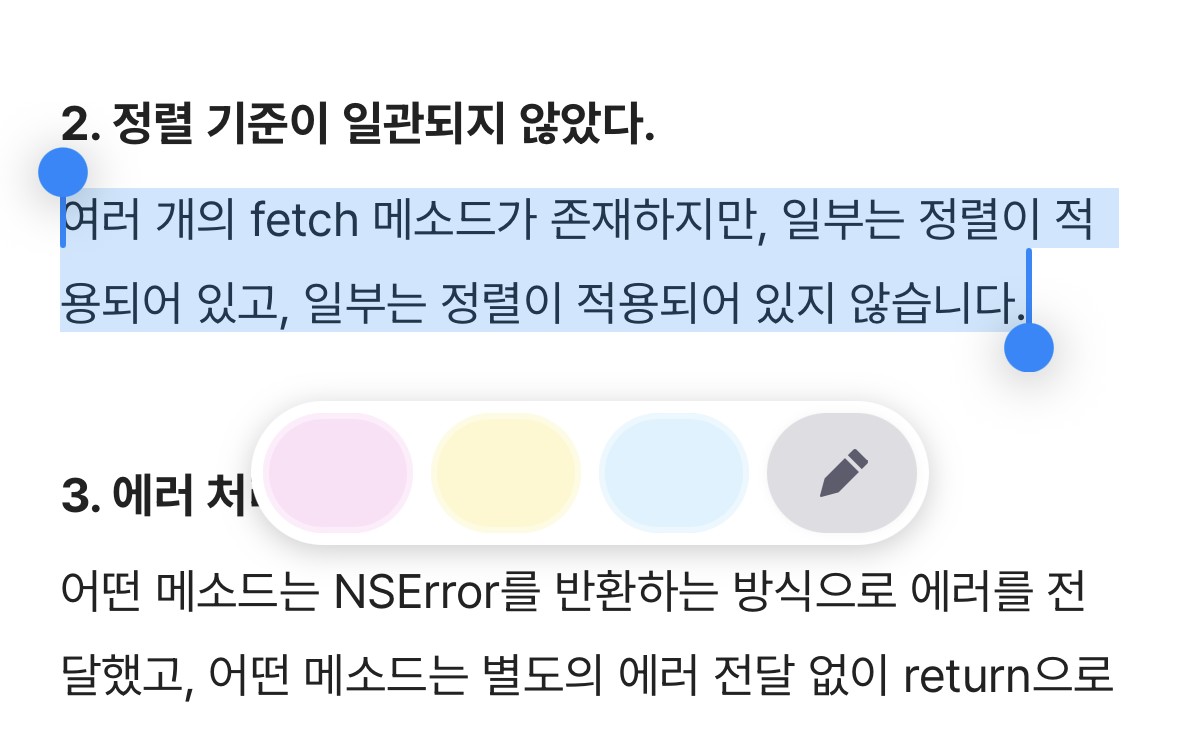 실제로 이 기능에 대해서는 긍정적인 피드백도 있었습니다. "문장 단위로 자동 선택되는 건 좋네요" 하지만 그 다음 피드백이 더 중요했습니다. "근데 제가 원하는 부분만 선택해서 저장할 수는 없나요?"