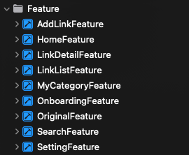 더 이상 하나의 Feature 모듈 안에서 폴더링으로만 피처를 구분하지 않고, 각 피처를 물리적으로 분리된 모듈로 구성했습니다. 이제 탭탭의 피처는 각각 독립적인 모듈이 되었습니다.
